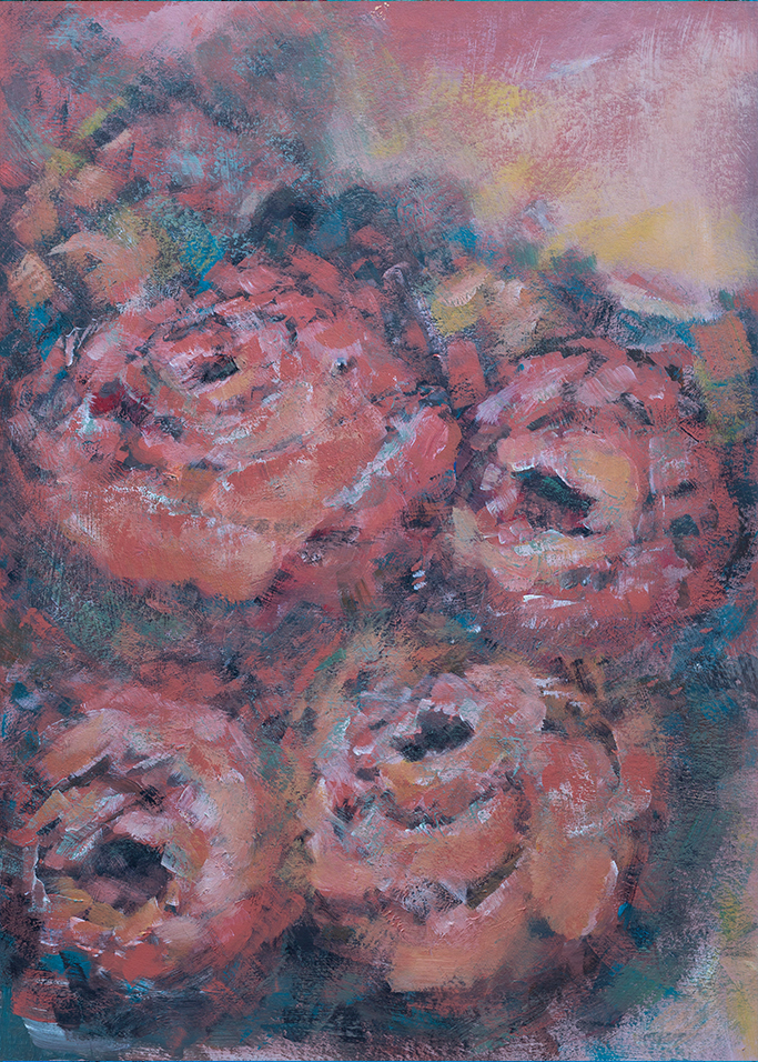 Kwiaty 03 | 50 x 70 cm | 2025 r. | cykl: „Kwiaty” | technika mieszana na beermacie