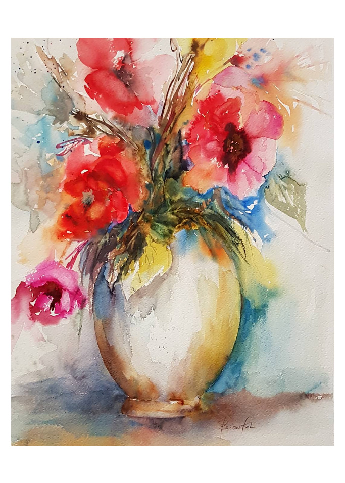 „Kwiaty w wazonie 01” | 50 x 70 cm | 2023 r. | cykl: „Kwiaty” | akwarela