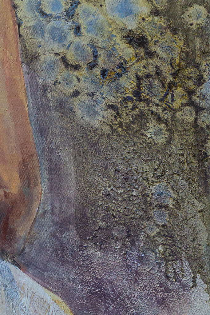 W serii „Postacie” faktura malarska odgrywa kluczową rolę w budowaniu narracji – nierówności powierzchni, zacieki i malarskie „grzyby” tworzą nie tylko tło, ale i warstwę symboliczną. Te niestandardowe środki wyrazu wzmacniają emocjonalny i interpretacyjny wydźwięk obrazów, zachęcając odbiorcę do osobistych refleksji i odczytań. To malarstwo, które mówi nie tylko formą postaci, ale i śladem procesu twórczego.